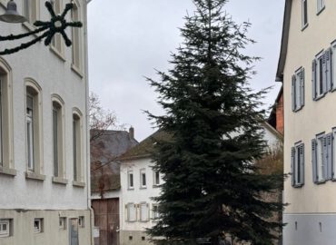 Hoch hinaus – der Schmuck kommt. Da hilft auch keine Leiter 🪜😲 mehr – Danke 🙏 dem „Baumschmuck-Team“ 🎄.