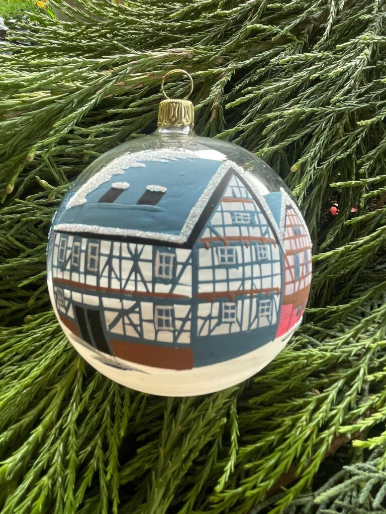 Alle Glaskugeln werden in handwerklicher Tradition im Erzgebirge hergestellt. Durch die detailreiche Bemalung von Hand ist jede ein Unikat. Der Preis musste in diesem Jahr auf 15 Euro angepasst werden. Der dabei entstehende zusätzliche Erlös wird von EINST UND JETZT e.V. zusammen mit dem Arbeitskreis „Jüdisches Leben in Hünfelden“ für das Verlegen weiterer Stolpersteine verwendet.